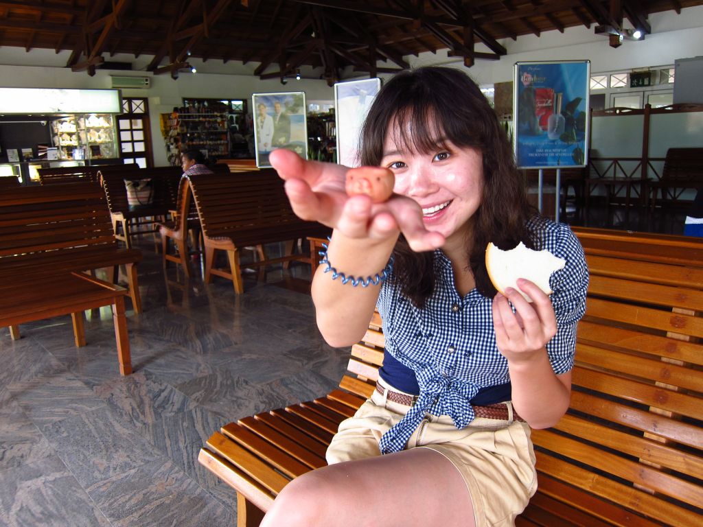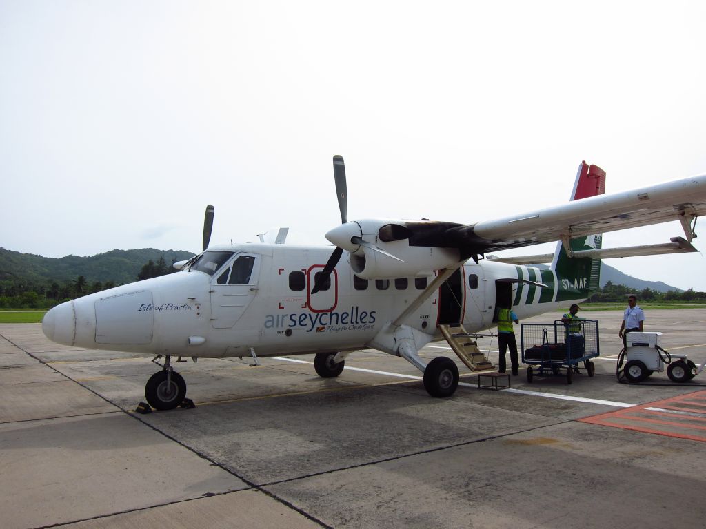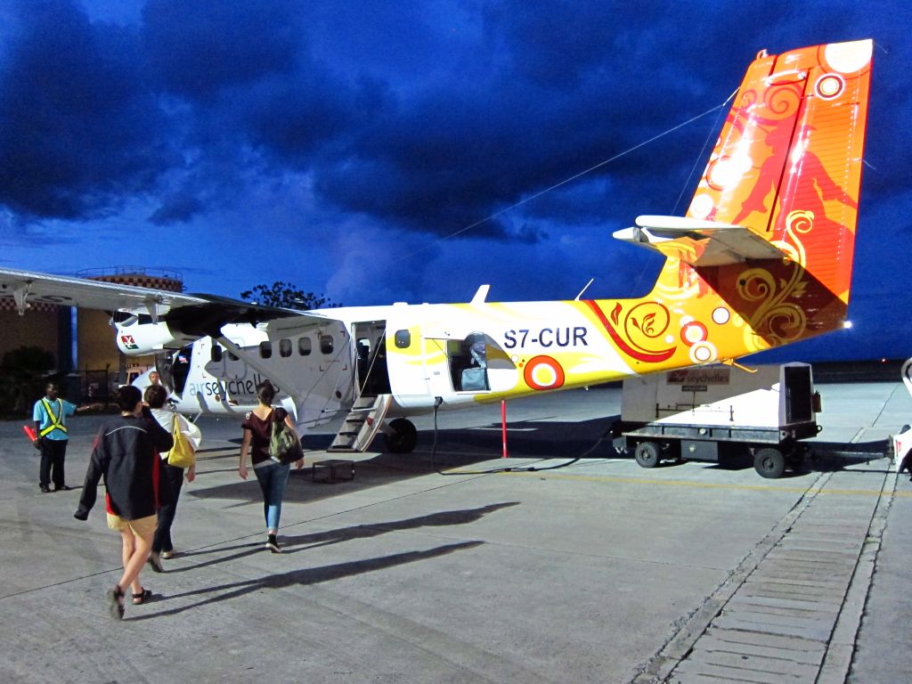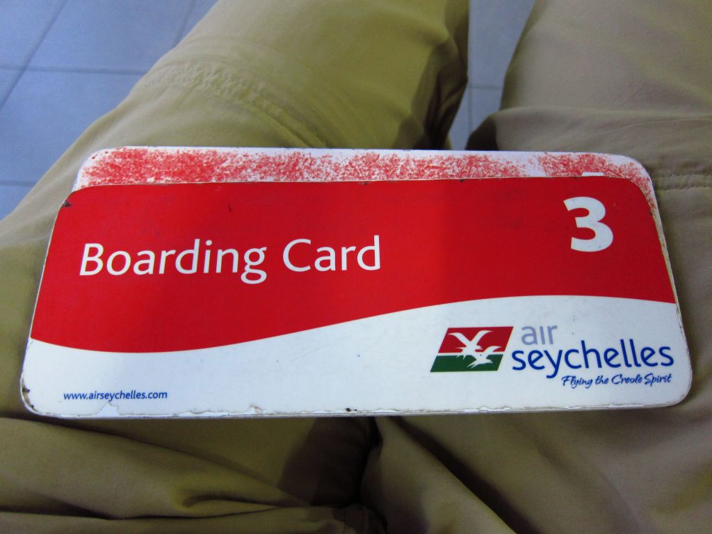 Am Neujahrsmorgen fuhren wir dann zum Flughafen und flogen in 15 Minuten zurück nach Mahé. Hier der Abflugbereich und ein Glücksferkel.