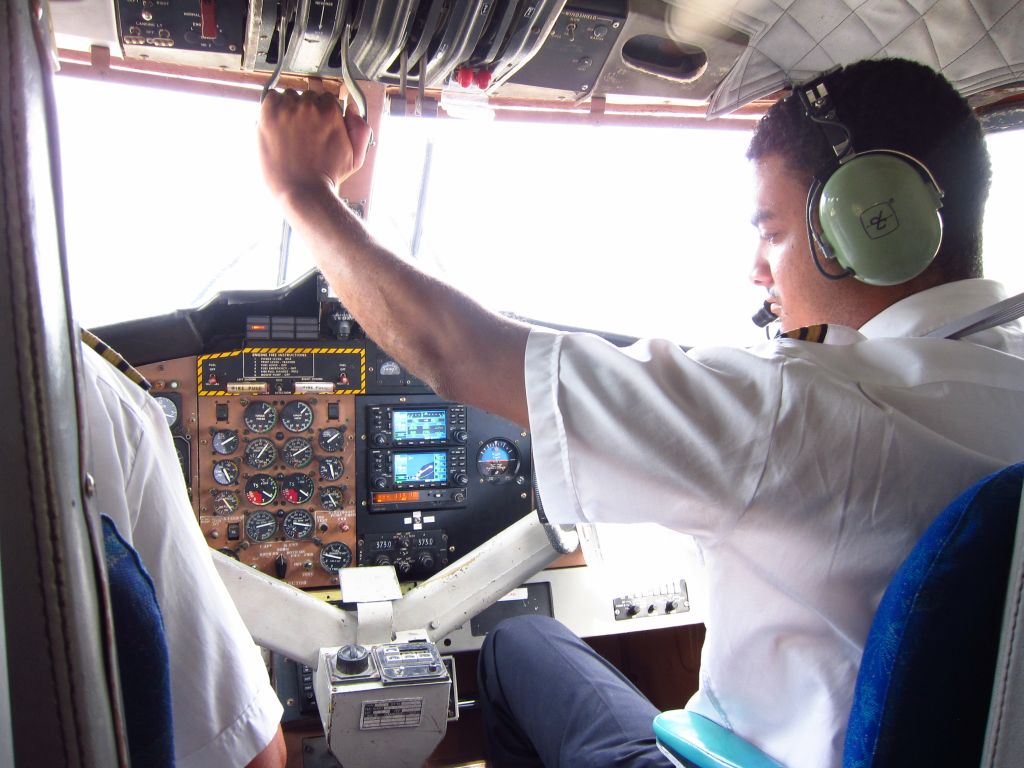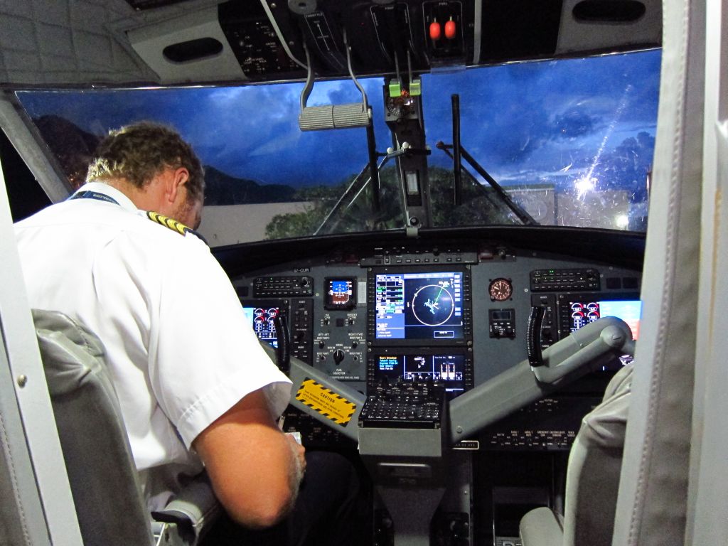 Auch in diesem saßen wir wieder in der ersten Reihe, gleich hinter den Piloten.