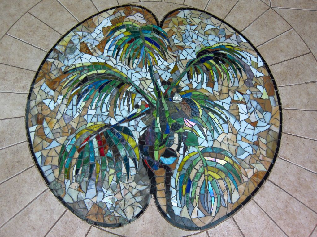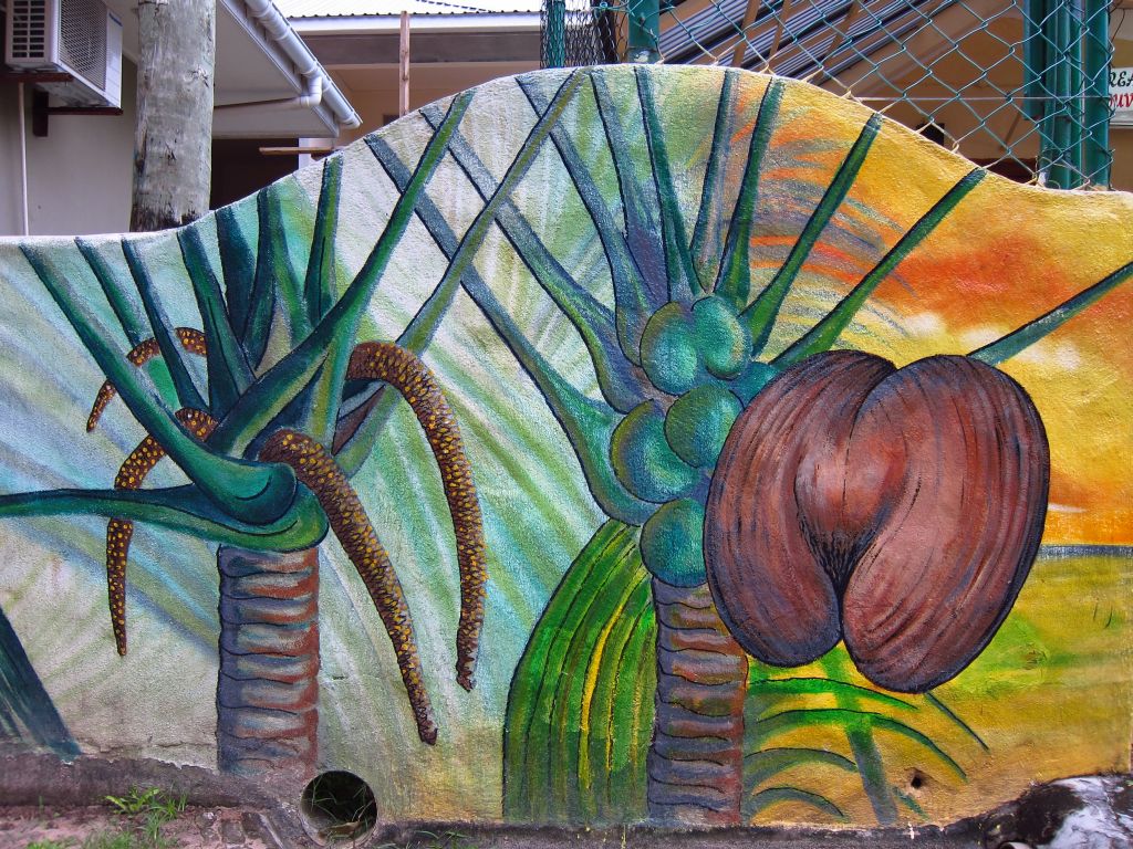 Coco de Mer als Mosaik im Postamt von Victoria.