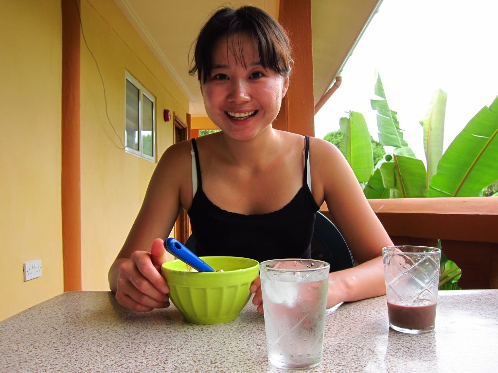 Kakao und Eis zum Frühstück auf unserem Balkon.