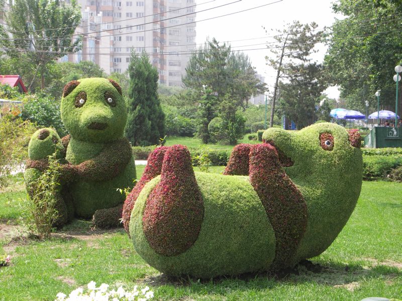 Anschliessend kann man entlang durch Eisengitter geschuetzter Gaenge spazierengehen und weitere Tiere aus der Naehe beobachten. Hier werden sogar die chinesischen Senioren aktiv und schlagen ihre Gehstoecke mit voller Kraft an die Metallgitter, damit die Tierchen sich ein bischen bewegen.