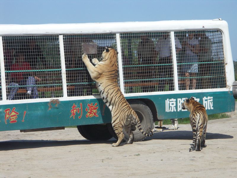 Heute morgens war ich im Siberian Tiger Park, ungefaehr 15km noerdlich von Harbin. Der sibirische Tiger ist die groesste aller Katzenarten und uebertrifft in der Koerperlaenge (bis zu 290cm) und dem Gewicht (bis zu 320kg) sogar den Loewen.