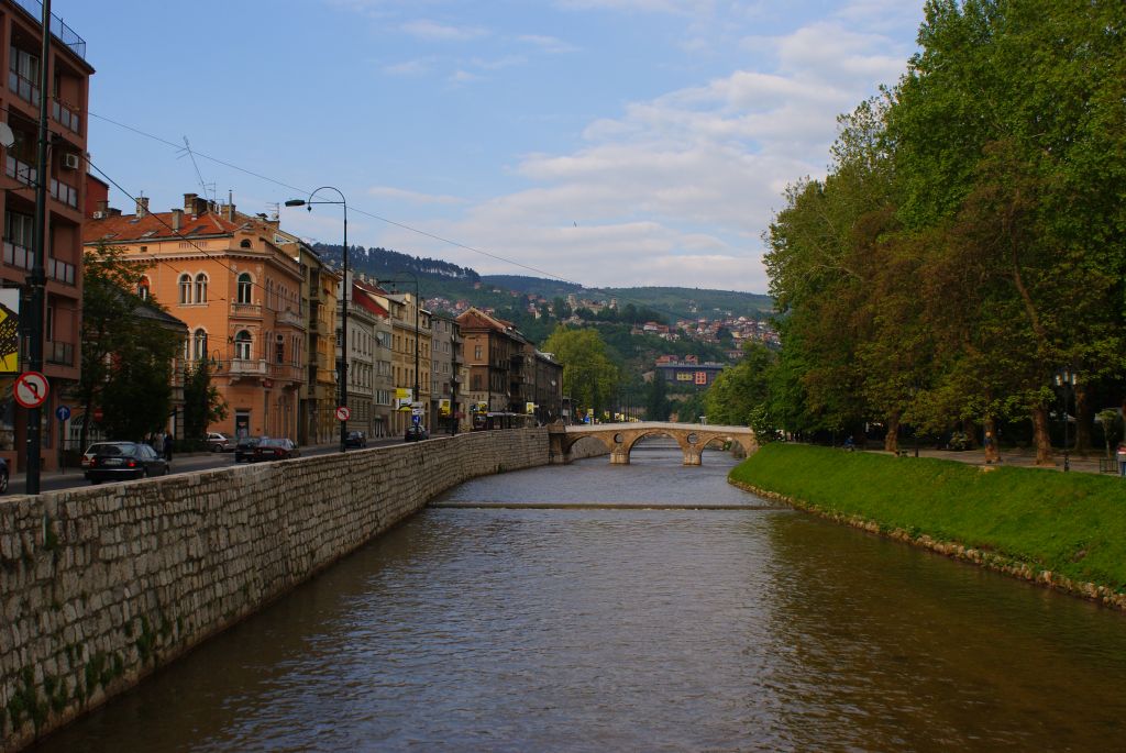 Der Fluss Miljacka fließt durch das gesamte Zentrum von Sarajevo