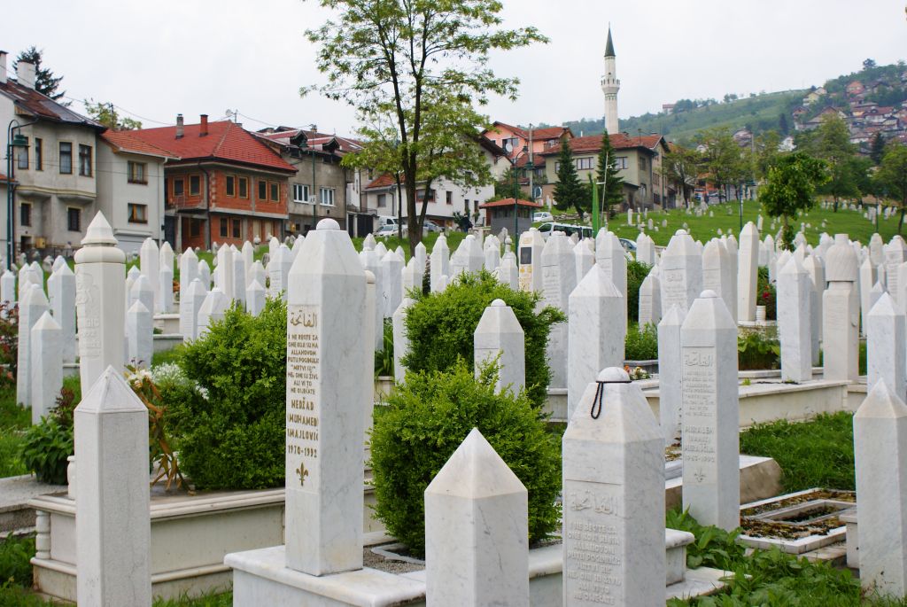 Einer der zahlreichen Friedhöfe in den Hügeln um Sarajevo. Die meisten Gräber stammen aus den Jahren 1992 – 1994. Dem Bürgerkrieg in dieser Zeit fielen alleine in Sarajevo ca. 10.000 Menschen zum Opfer, ca. 60.000 Menschen wurden verletzt.
