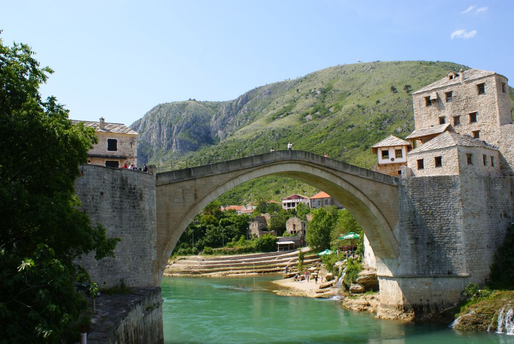 Stari Most, die alte Brücke über die Neretva, wurde im 16. Jahrhundert gebaut und während des Bürgerkriegs 1993 durch kroatischen Beschuss zerstört. 1995 begann die Rekonstruktion, 2004 wurde sie wiedereröffnet.