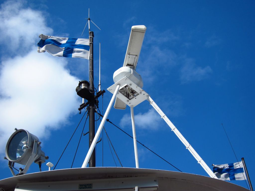 Finnische Flaggen auf der Fähre zurück nach Helsinki.