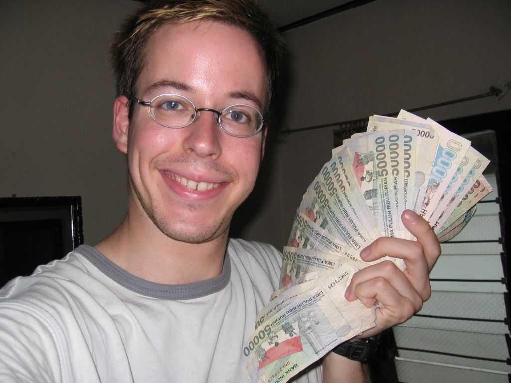 Ausserdem hab ich wieder Geld getauscht. Jetzt bin ich zum ersten mal im Leben Millionär.