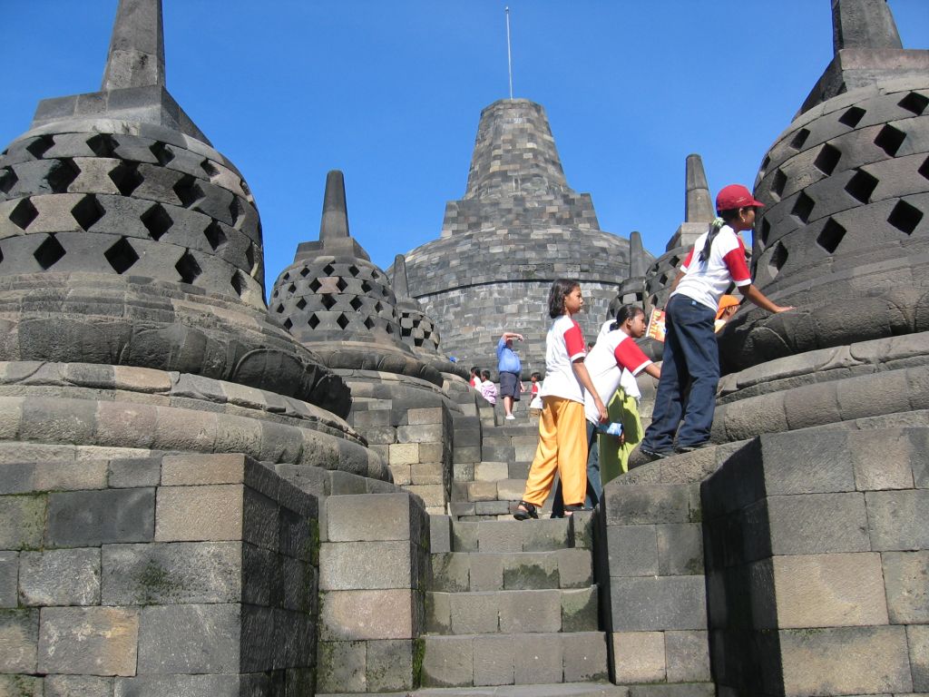 Und wieder ist ein Tag in Indonesien vorbei. Langsam finde ich Geschmack an Java. Ich bin heute überraschenderweise nicht durch das Morgengebet geweckt worden. Trotzdem bin ich schon um 5 morgens aufgestanden, damit ich früh zum Tempel Borobudur komme. Ich werde jetzt wohl jeden Tag zwischen 4 und 5 morgens aufstehen. Es hat den Vorteil, dass ich früh bei den Tempeln bin und es noch nicht so heiß ist. Leider hab ich gestern kein Handtuch vom Hostel bekommen da der Mitarbeiter vorsichtshalber bei jeder Frage nach einem Handtuch mit dem Kopf schüttelte und immer sagte “No Tower”.