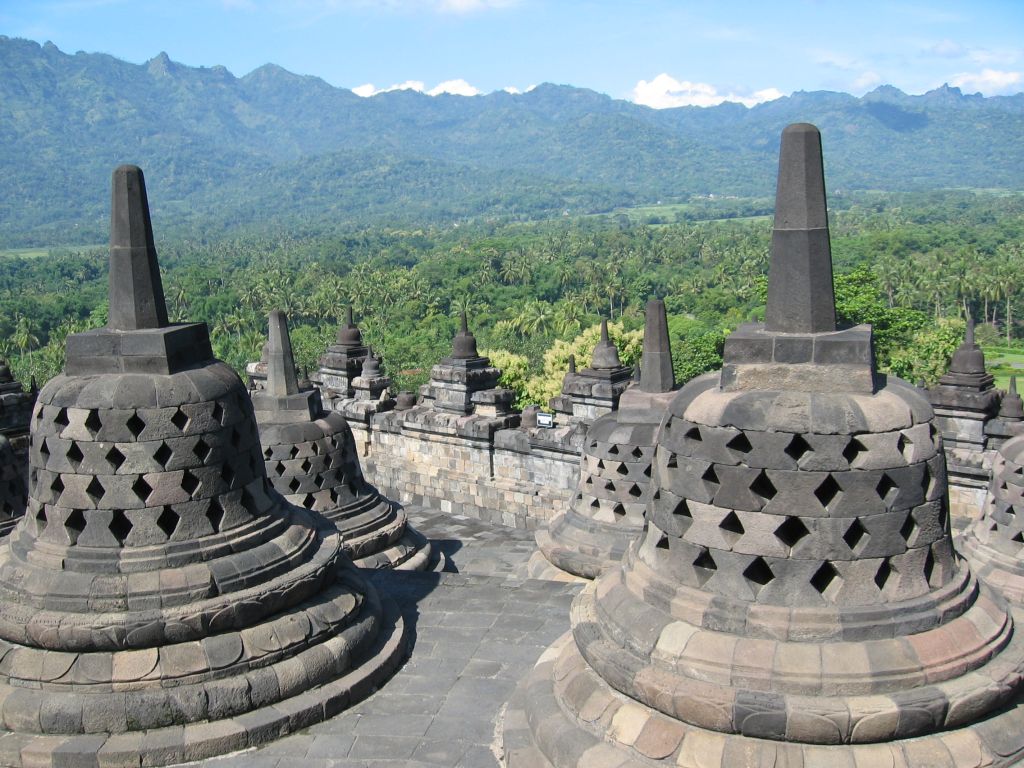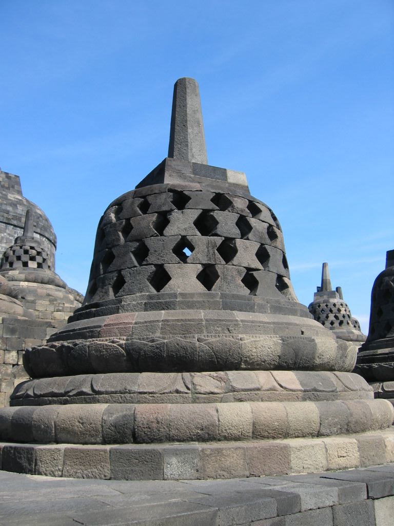 Borobudur ist ein riesiger hinduistischer Tempel aus dem 9. Jhd. nach Christus. Es ist sogar das grösste buddhistische Monument der Welt. Man kann auf mehreren Ebenen im Urzeigersinn um den Chedi laufen und geht damit den buddhist. Weg zur Erleuchtung nach.