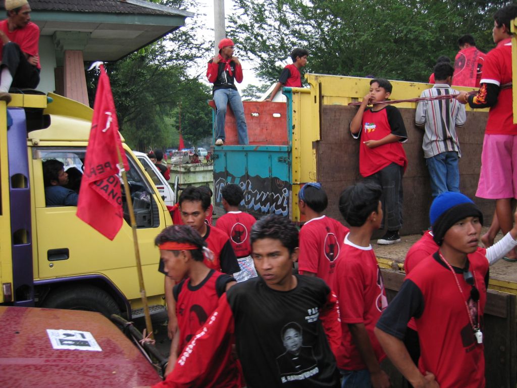 Auf dem Weg sah ich sehr viele Parteianhänger mit roten Hemden und Flaggen die in dutzenden von großen Lastwagen irgendwo hin fuhren. Dadurch entstand ein furchtbares Verkehrschaos und ich hatte ungefähr 2 Stunden Vespätung. Morgen geht es zurück nach Jakarta.