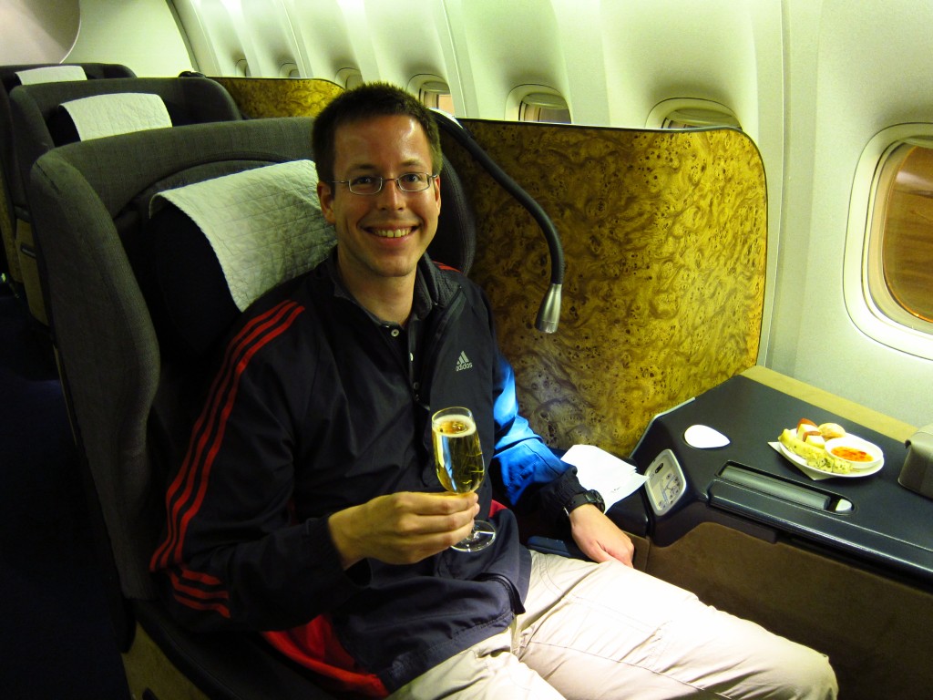 Da ich das Ganze auch als kleinen Rachefeldzug gegen British Airways sah, versuchte ich, als Passagier möglichst hohe Kosten zu verursachen. Ich nutzte alle Lounges auf dem Weg, verschlang große Essensmengen an Bord und am Boden und schlürfte bis zum Umkippen Champagner.