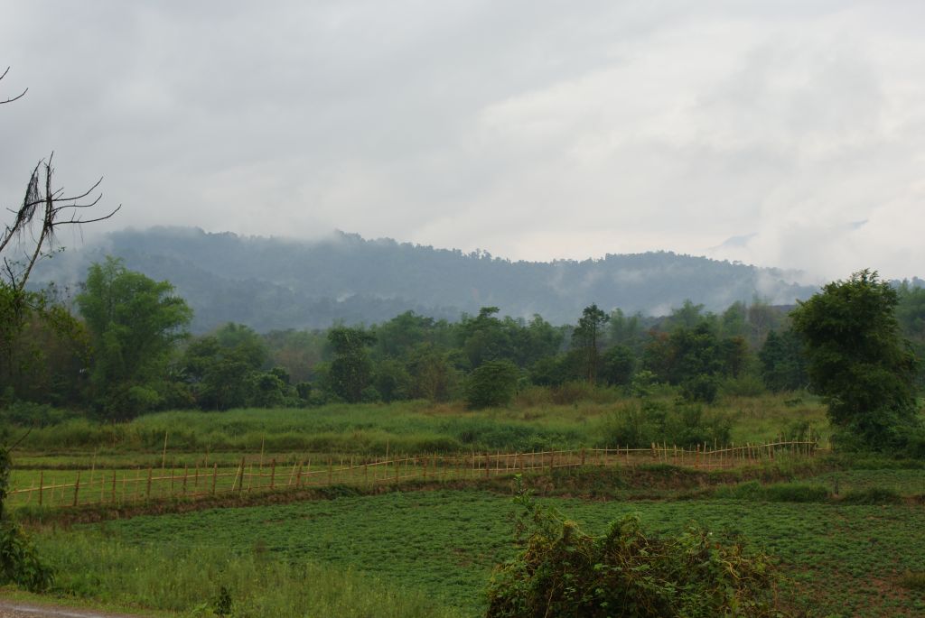 Der Bus schlängelte sich durch eine herrliche Gebirgslandschaft. Entlang des Straße gab es Gemüsefelder und kleine Dörfer mit einfachen Holz- und Bambushäusern. Es regnete immer wieder ein wenig und die Landschaft war in Nebel gehüllt.