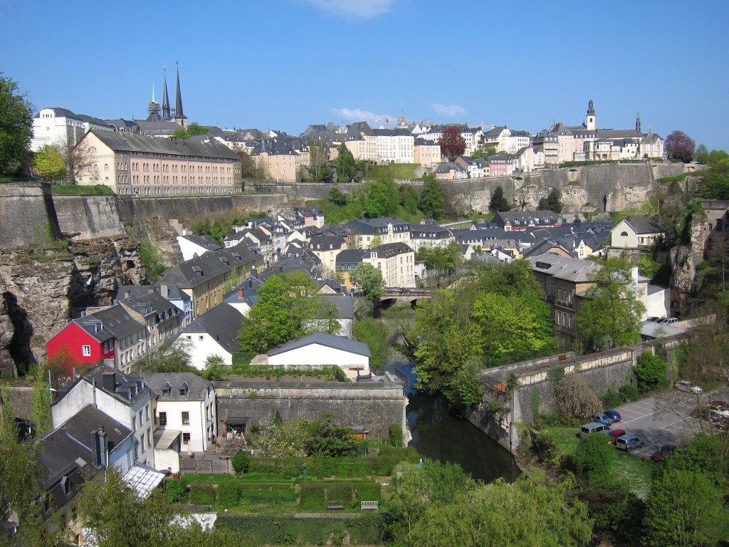 Nun liegt das zweite Wochenende hinter mir, an welchem ich einen kurzen Abstecher ins Ausland machte. Gestern am Morgen ging es mit Luxair von München nach Luxemburg. Nach einer Flugzeit von 55 Minuten und einer Busfahrt vom Flughafen ins Stadtzentrum fiel mir die Orientierung in der Stadt zunächst schwer. Die Innenstadt verläuft entlang des bogenförmigen Petrustals aber auch innerhalb des Tals. Die Oberstadt und das Tal sind durch zahlreiche Treppen und gewundene Straßen miteinander verbunden.