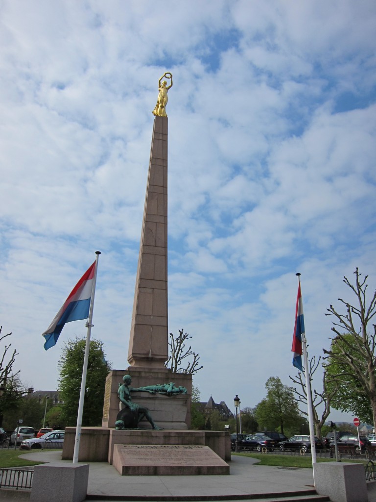 Gëlle Fra, die goldene Frau, auf einem Mahnmal am Place de la Constitution.