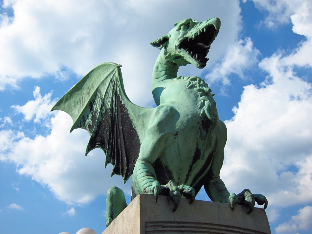 Drachenfigur im Stadtzentrum an einer Brücke über den Ljubljanica.