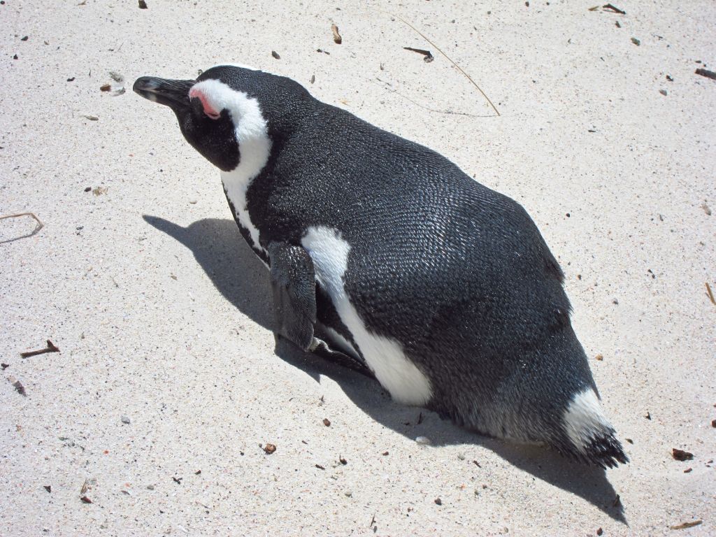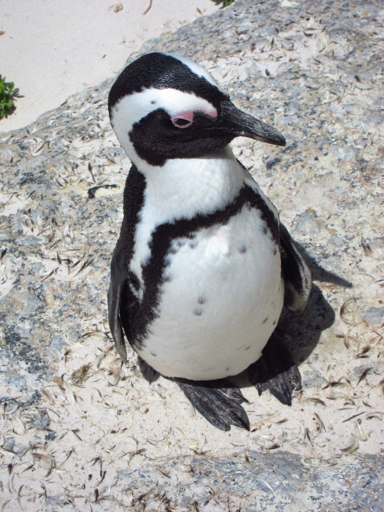 Ich besuchte die Pinguine am Boulders Beach, der ca. 25km vom Zentrum Kapstadts entfernt liegt. Als ich die Pinguine beobachtete, war es sehr windig und der Wind wirbelte viel Sand umher. Die Pinguine drehten sich alle in eine Richtung, damit sie nicht so viel Sand abbekommen…